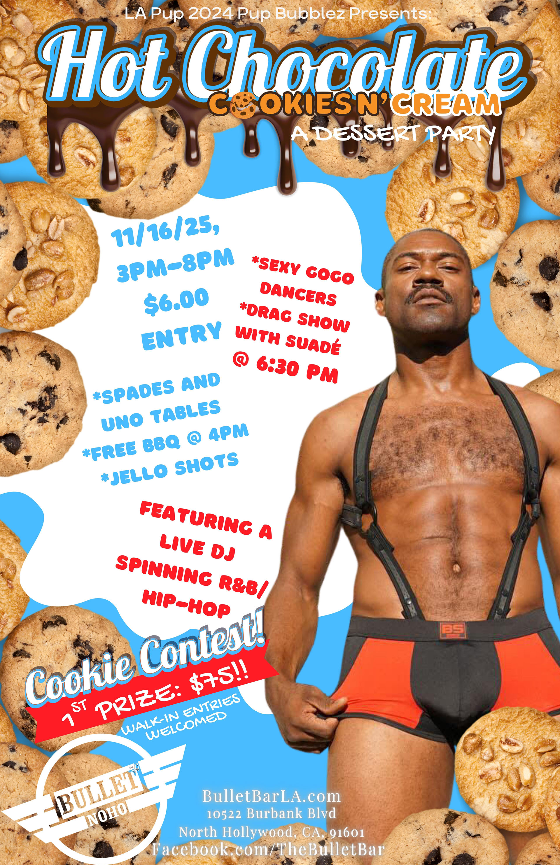 HOT CHOCOLATE COOKIES N' CREAM: A DESSERT PARTYCOOKIE CONTEST: 1st PRIZE $75with LA Pup 2024 PUP BUBBLEZ + SUADÉ